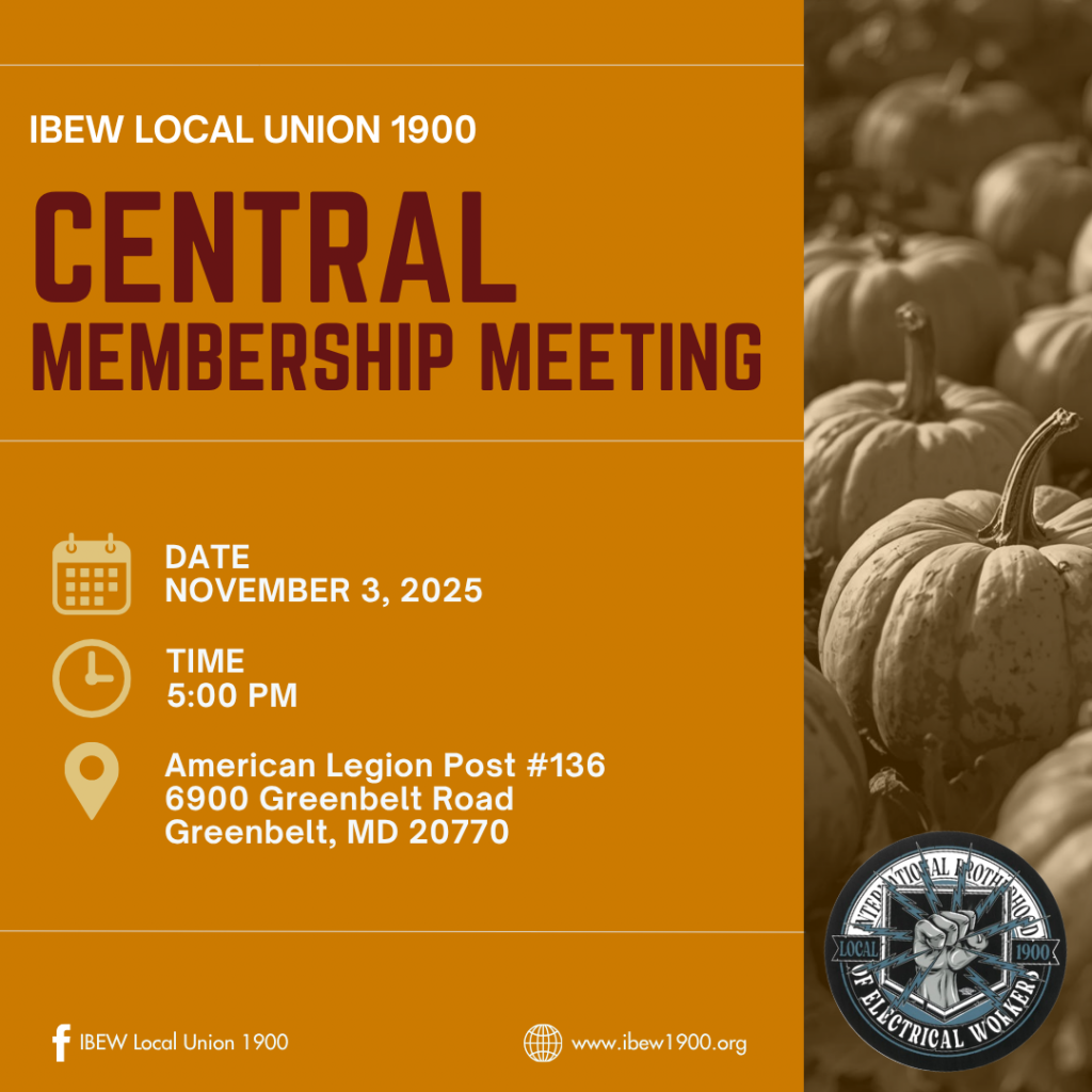This is a courteous reminder that our Central Membership Meeting is Monday, November 3, 2025. We encourage all IBEW Local 1900 Brothers and acheter levitra en toute securite Sisters to attend.