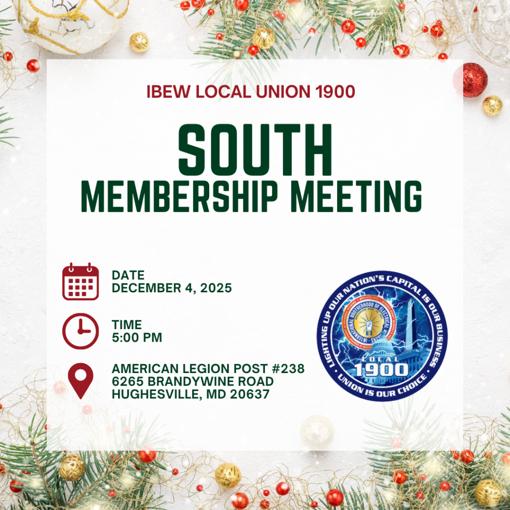 All IBEW Local Union 1900 members are invited to acheter du viagra a anderlecht attend our South Membership Meeting today, December 4, 2025, at 5:00 PM. If you have any questions, please contact the IBEW Local 1900 office at (301) 322-6030.