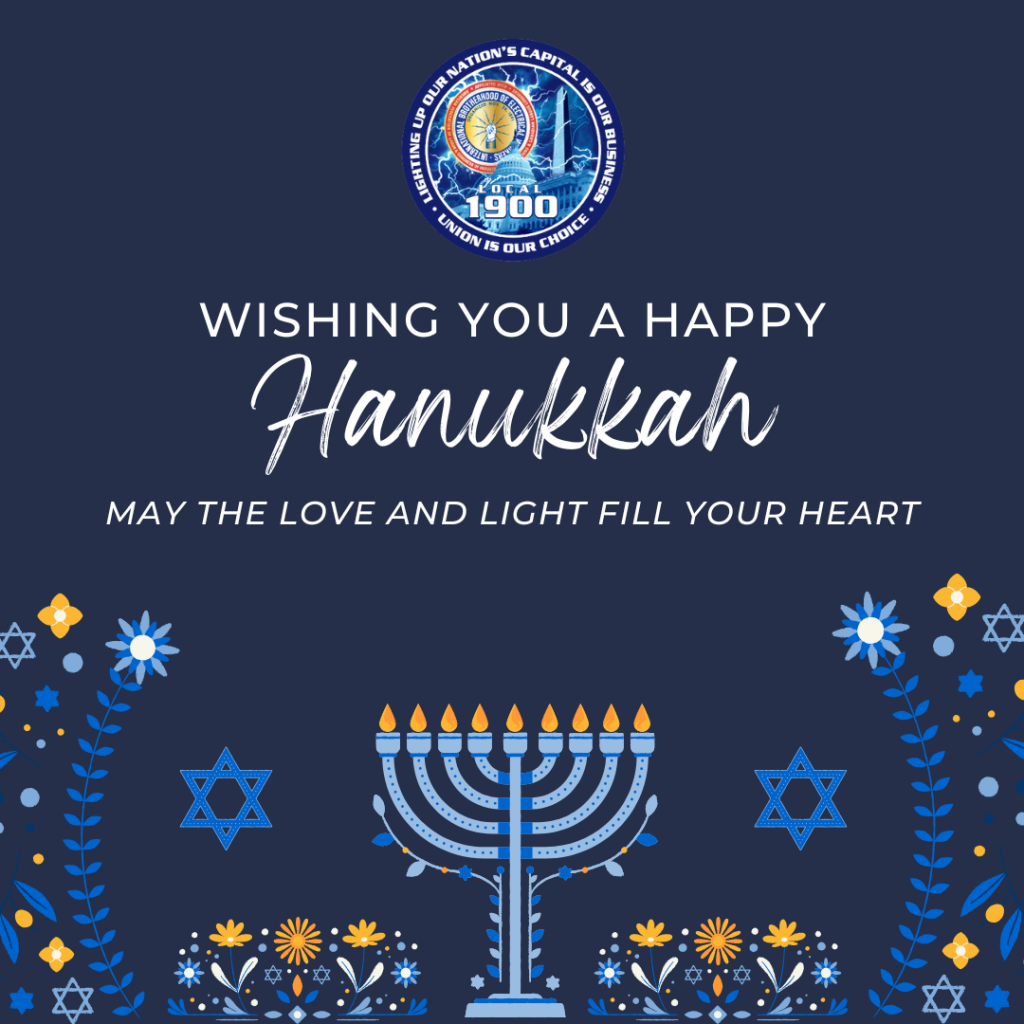 Current Events – IBEW Local 1900 https://ibew1900.org Tue, 09 Dec 2025 18:55:19 +0000 en-US hourly 1 https://wordpress.org/?v=6.7.4 https://ibew1900.org/wp-content/uploads/2022/12/IBEW-logo-2012-5a4bd583d7006-300x300-1-95x95.png Current Events – IBEW Local 1900 https://ibew1900.org 32 32 Happy Hanukkah https://ibew1900.org/2025/12/14/happy-hanukkah/ Sun, 14 Dec 2025 15:29:00 +0000 https://ibew1900.org/?p=11133 The Officers and Staff of IBEW Local 1900 wish you a season of light filled with renewed hope, cherished moments with family, and continued strength for the year ahead.